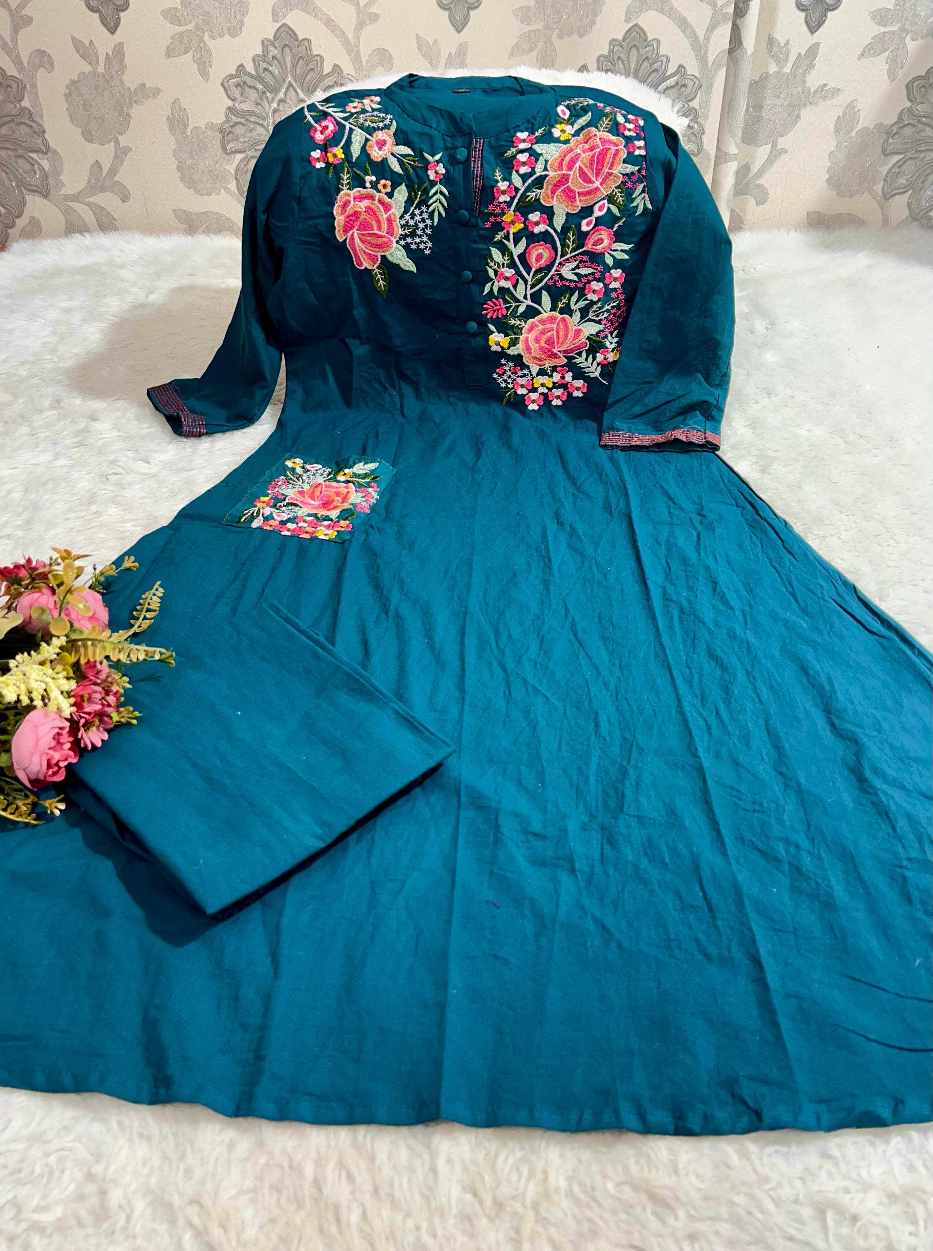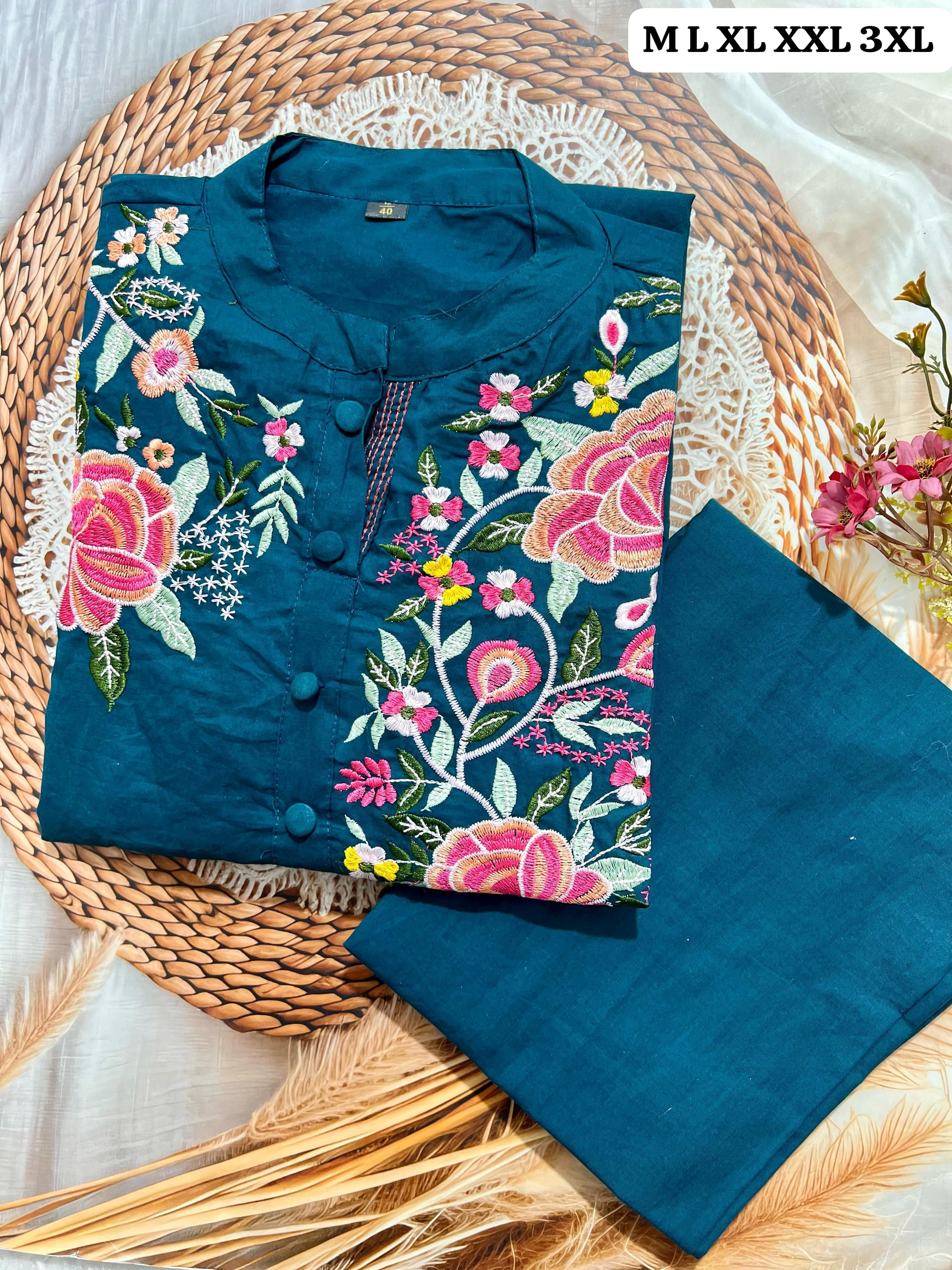 Pure fine Cotton fabric Embroidery Work Kurti with Pant with cotton 100