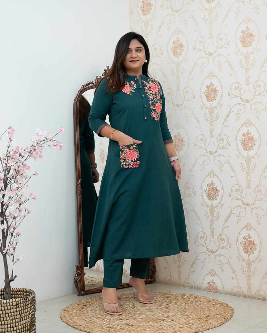 SF 3JU Pure fine Cotton fabric Embroidery Work Kurti with Pant