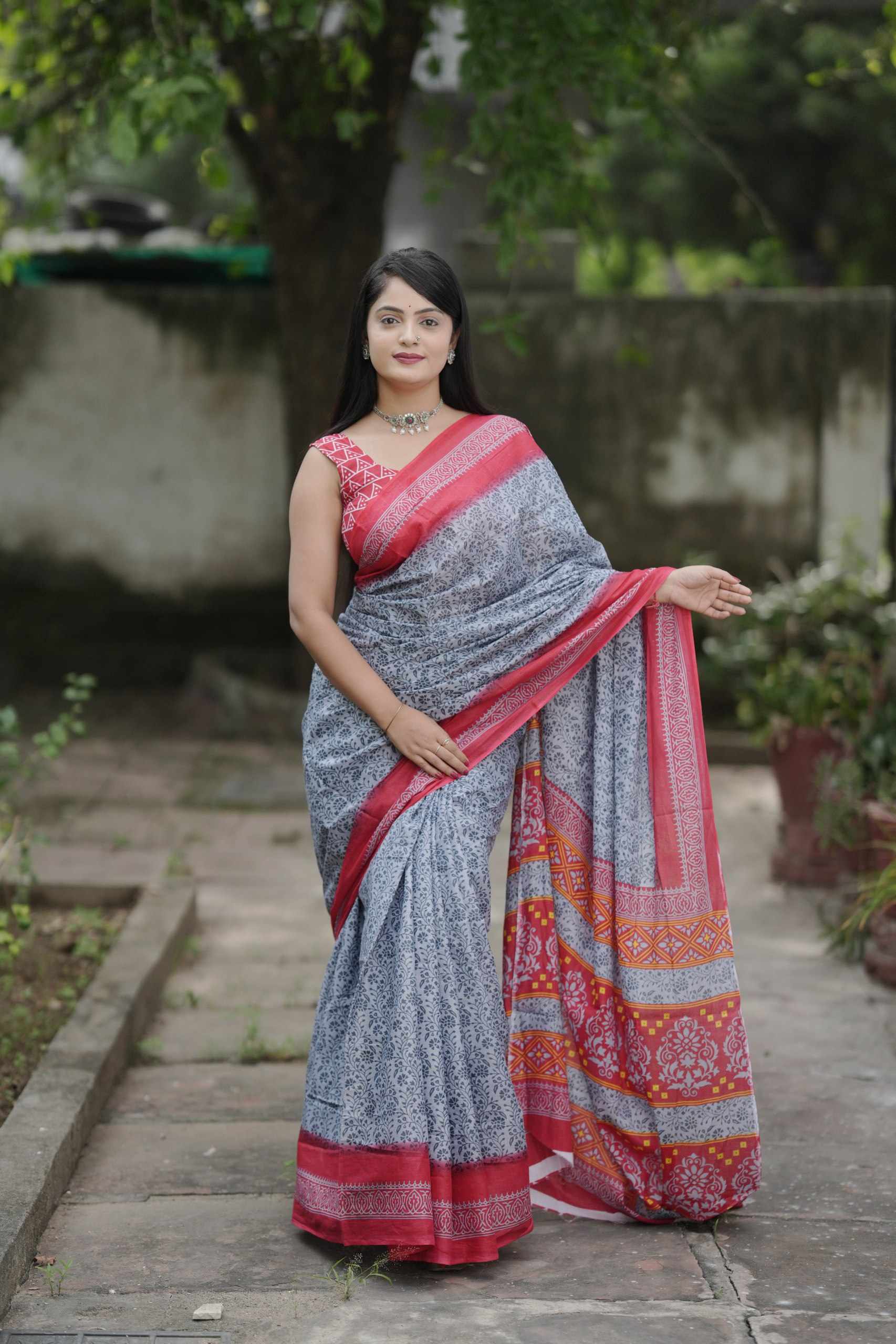 | Name : | JBC Grey MalMal Cotton Saree |