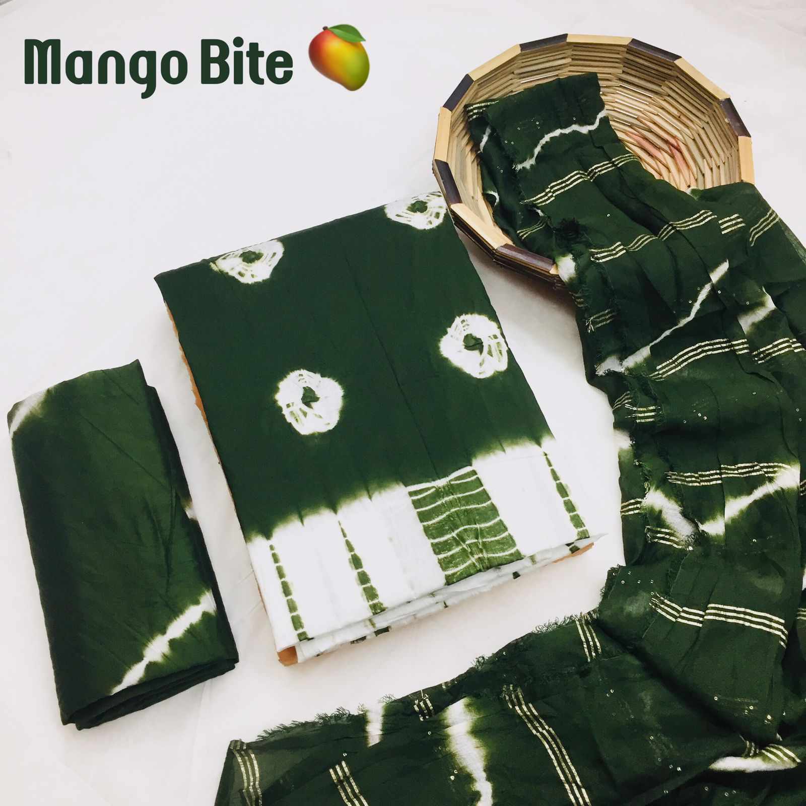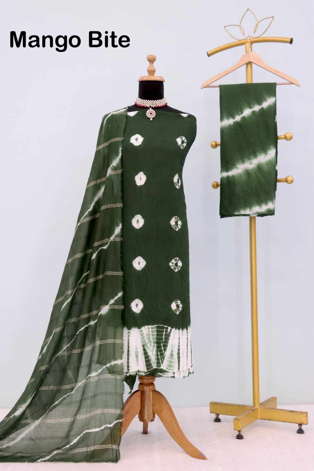 KT FIZA Green Pure Rayon Bandhni Dress Materail