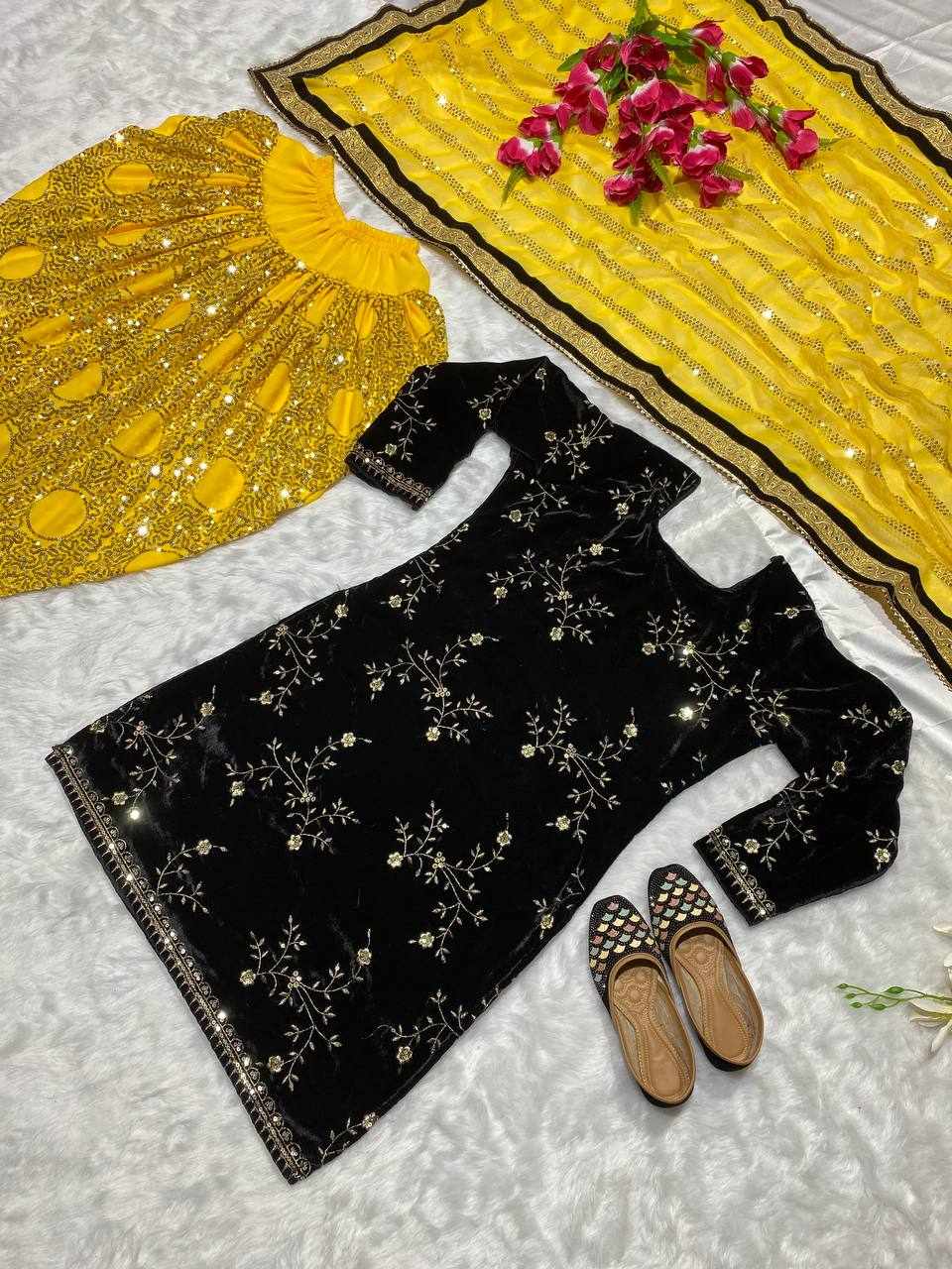 Top Fabric: Heavy Viscose Velvet with Heavy Embroidery 5mm Sequence Work with Sleeve