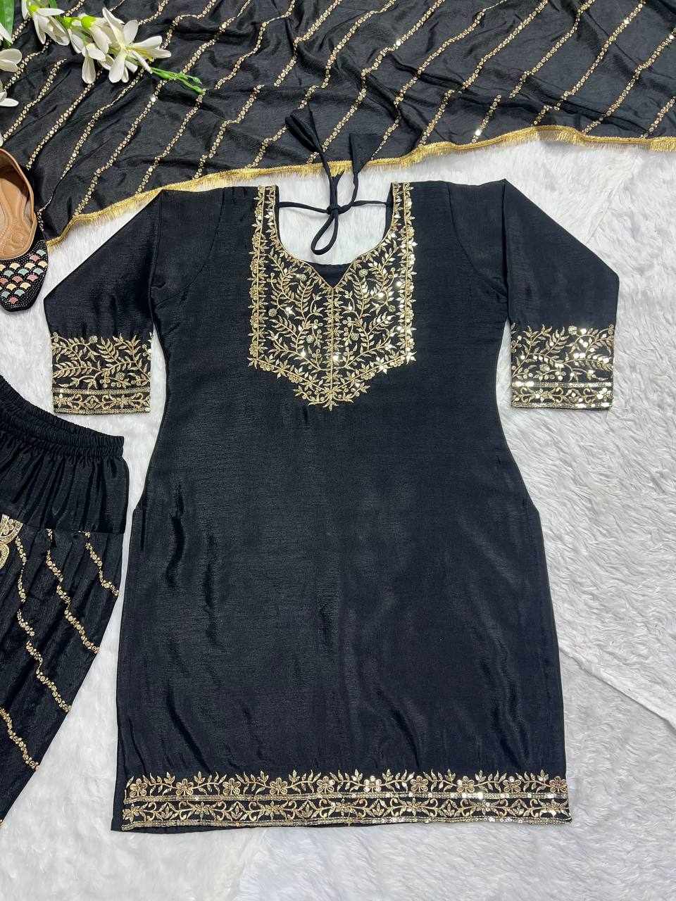 Dhoti Salwar: Heavy Pure Chinon with Embroidery 5mm Sequence Work (Fully Stitched Dhoti Style, XL Size, Length: 41-42)