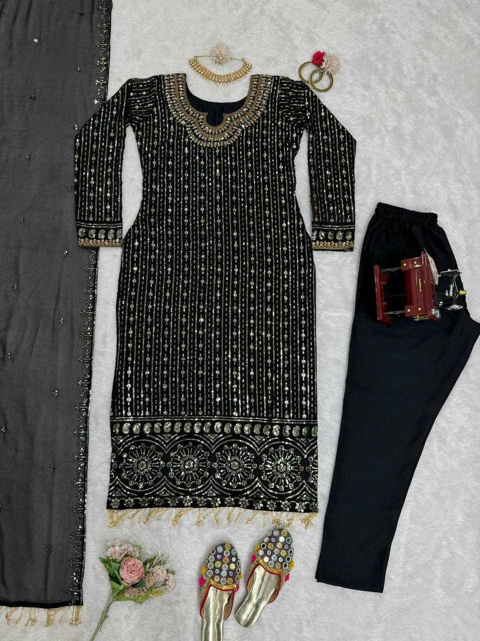 • Work: Beautiful Thread Embroidery with Sequence Work, Real Mirror Work & Stylish Latkan