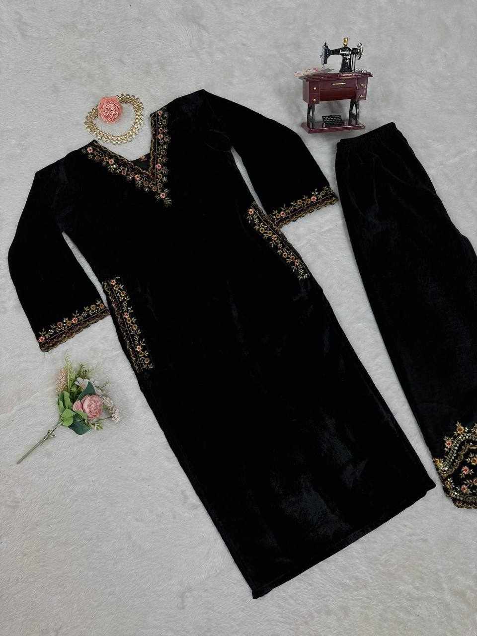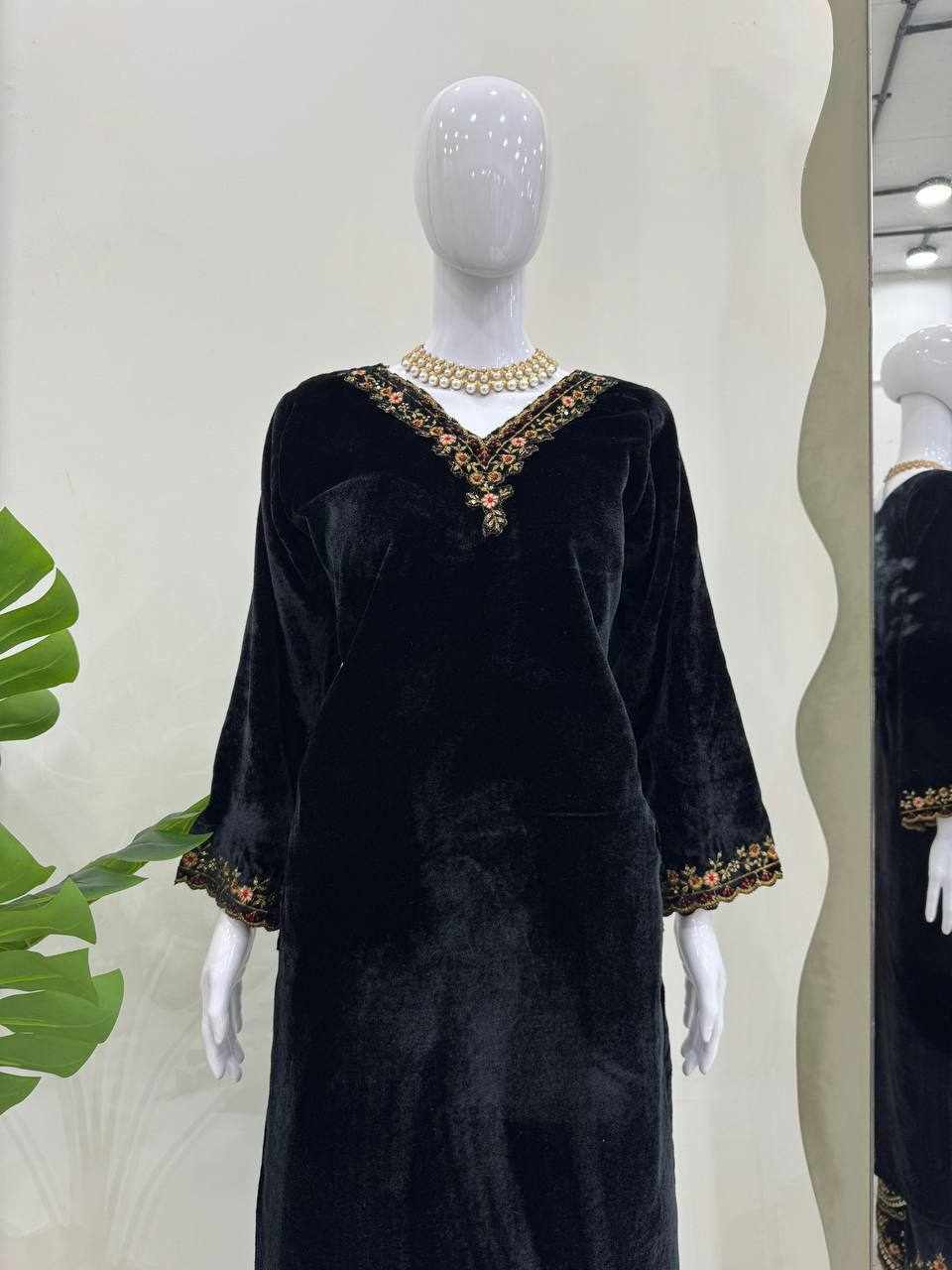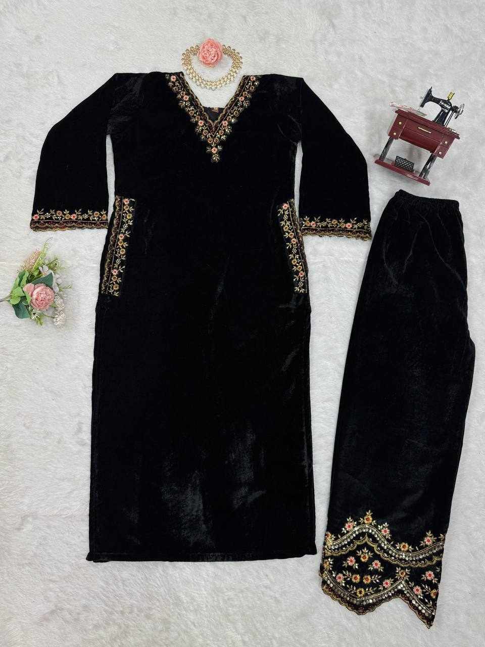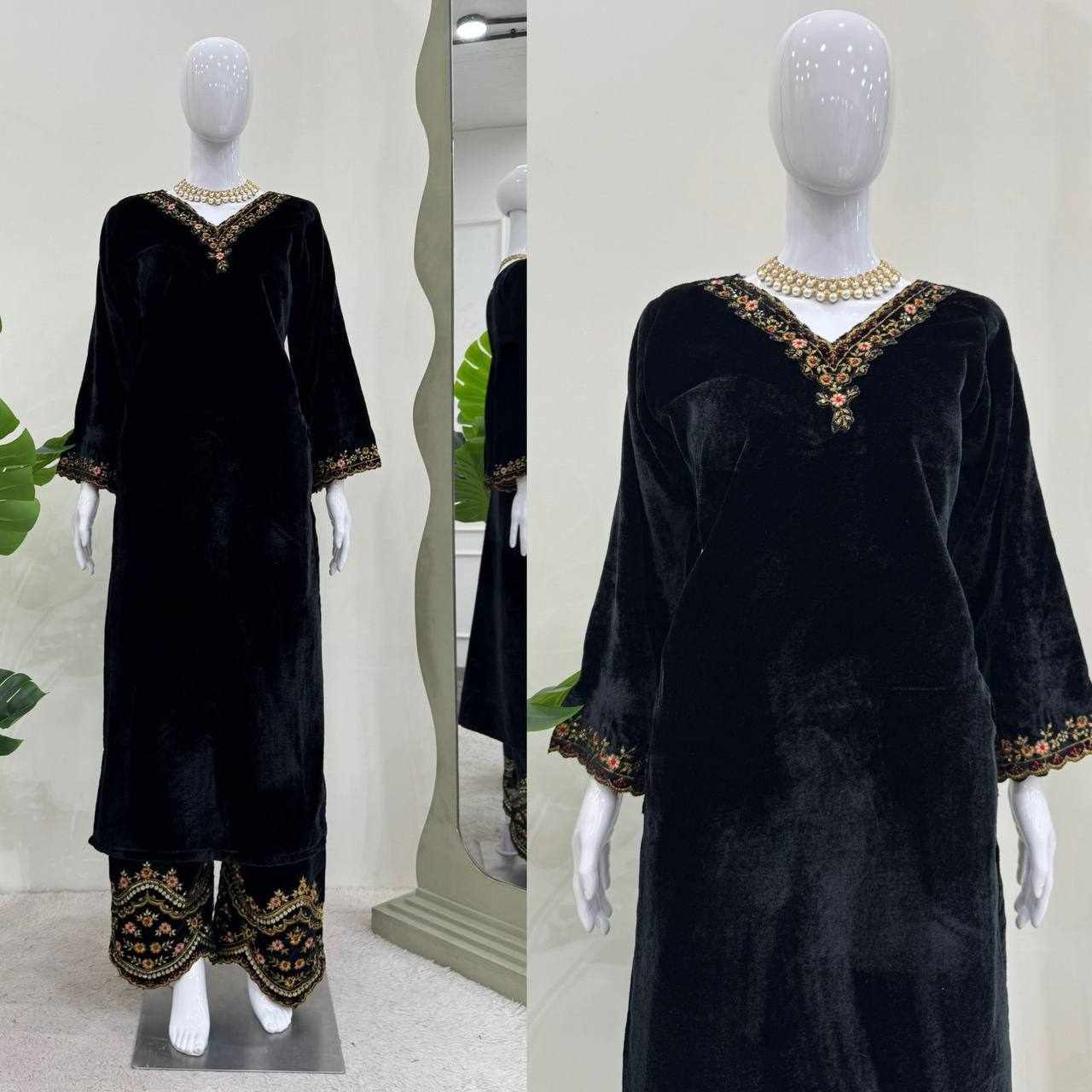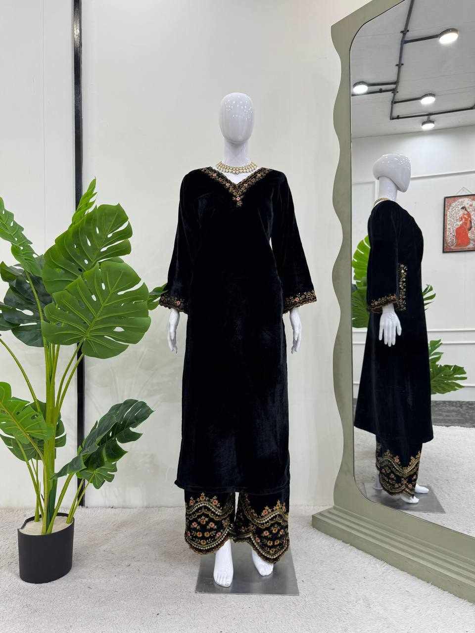Rich velvet texture combined with detailed embroidery gives a royal, classy, and comfortable look.