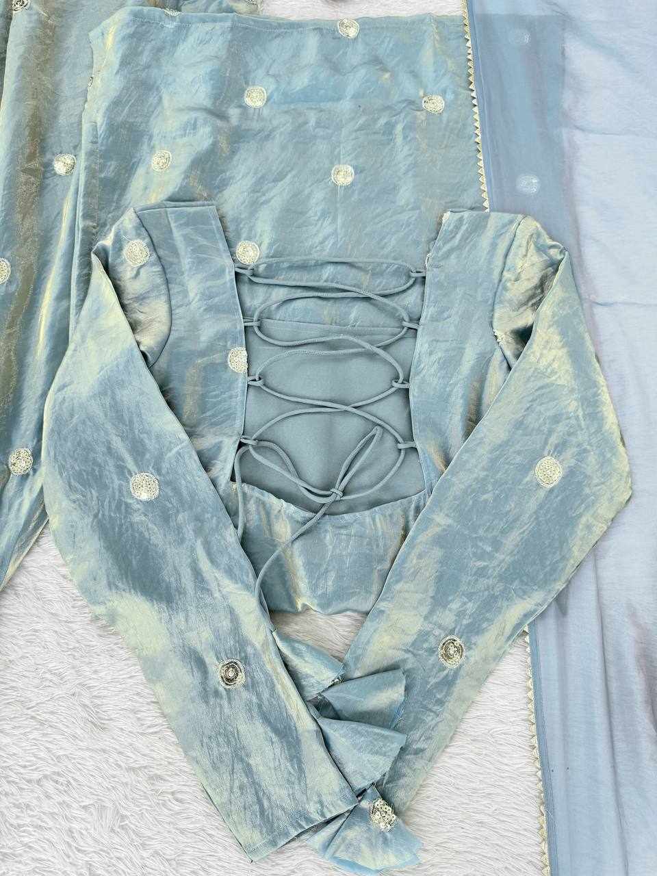 Pc 522 Pure Tissue Simmer Real Handwork and Read Diamond Work Crop Top Lehenga