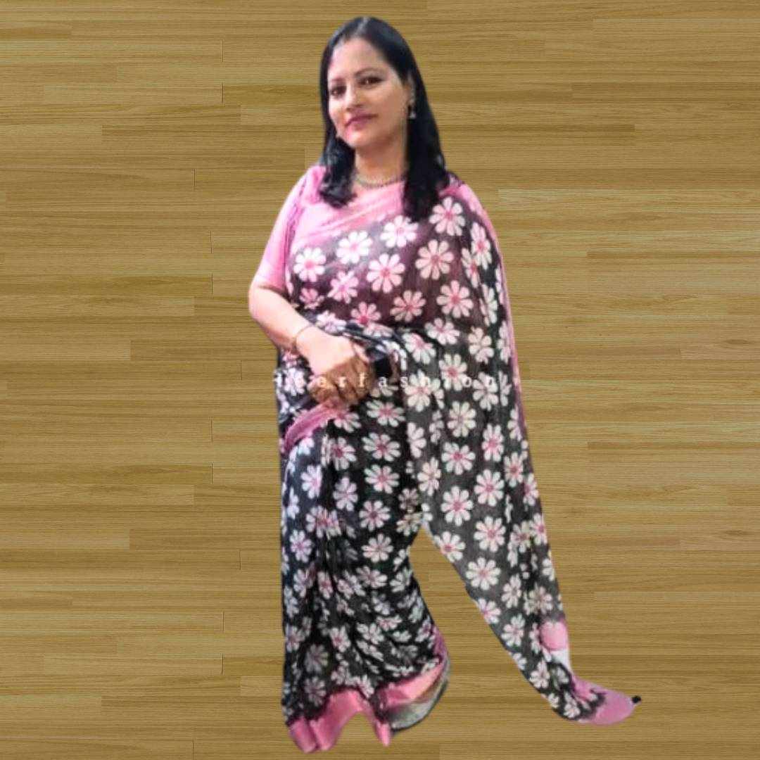 | Name : | S4S Cotton Linen Black Flower Saree |
