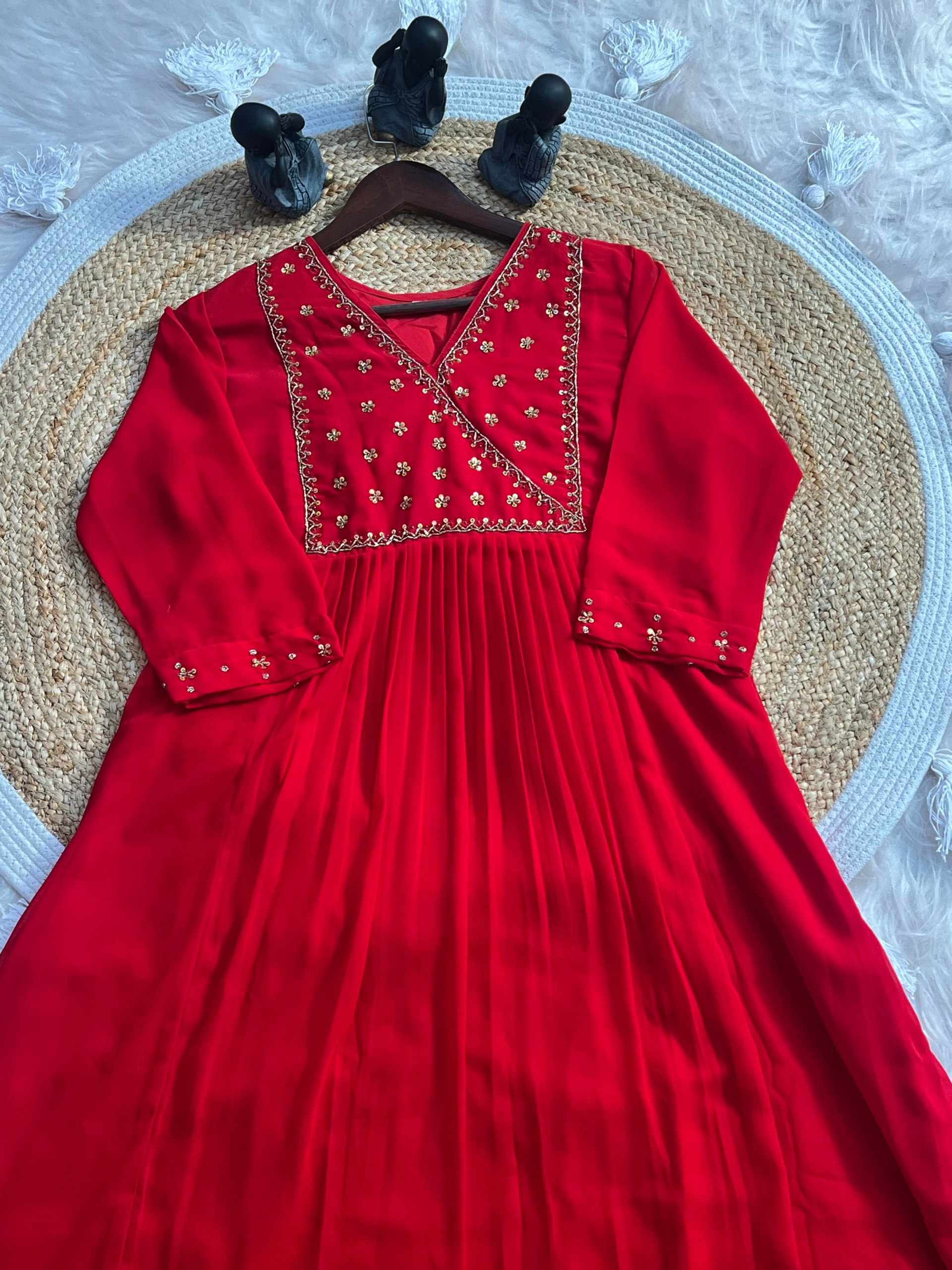 Reviews for WM12 RED BLOOMING GEORGETTE BEAUTIFUL HANDWORK KURTI